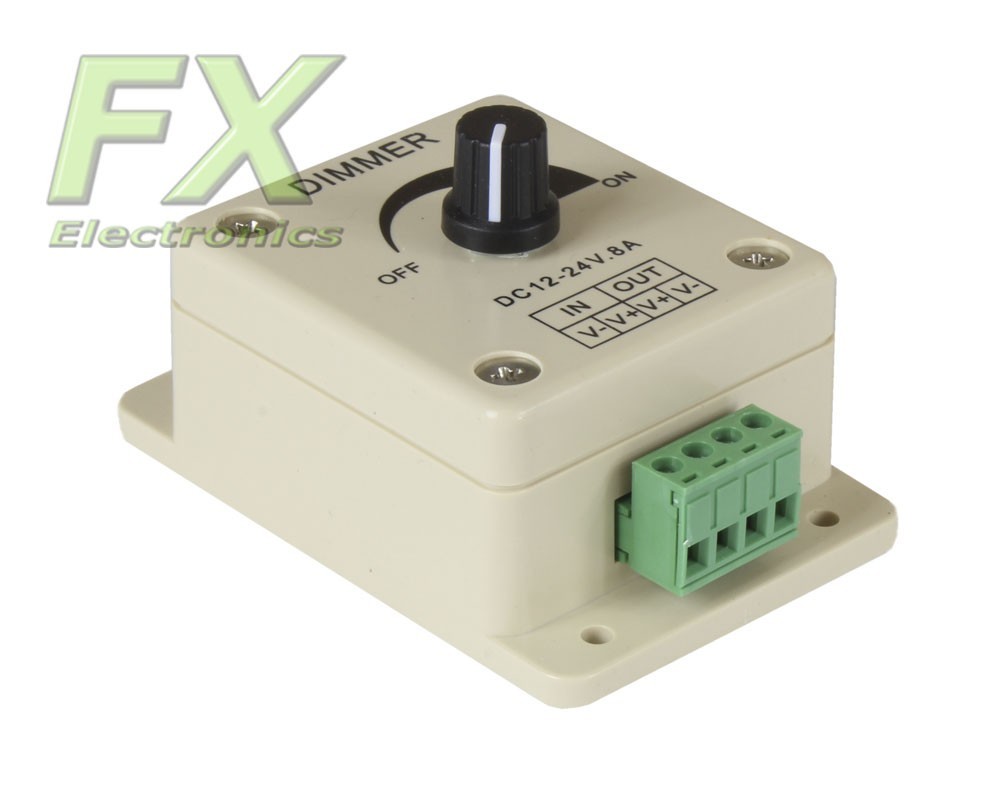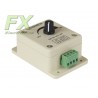 Universal PWM controller with a power of 190W, also known as a speed controller or dimmer. A device used to control the power supplied to the DC receiver. It supports both DC motors and all LED light sources (LED strips, LED diodes, etc.) and other DC receivers. This regulator has many applications due to the wide range of supported voltages up to 24V and currents up to 8A. Enclosed in a small plastic housing with knob control.